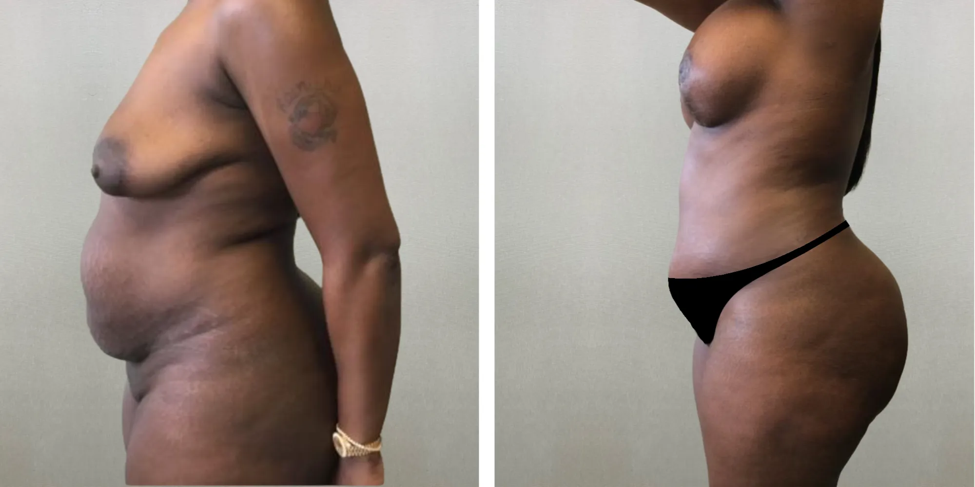 • Flank Liposuction: Reduced stubborn fat along the waistline to enhance contour and complement the tummy tuck results.