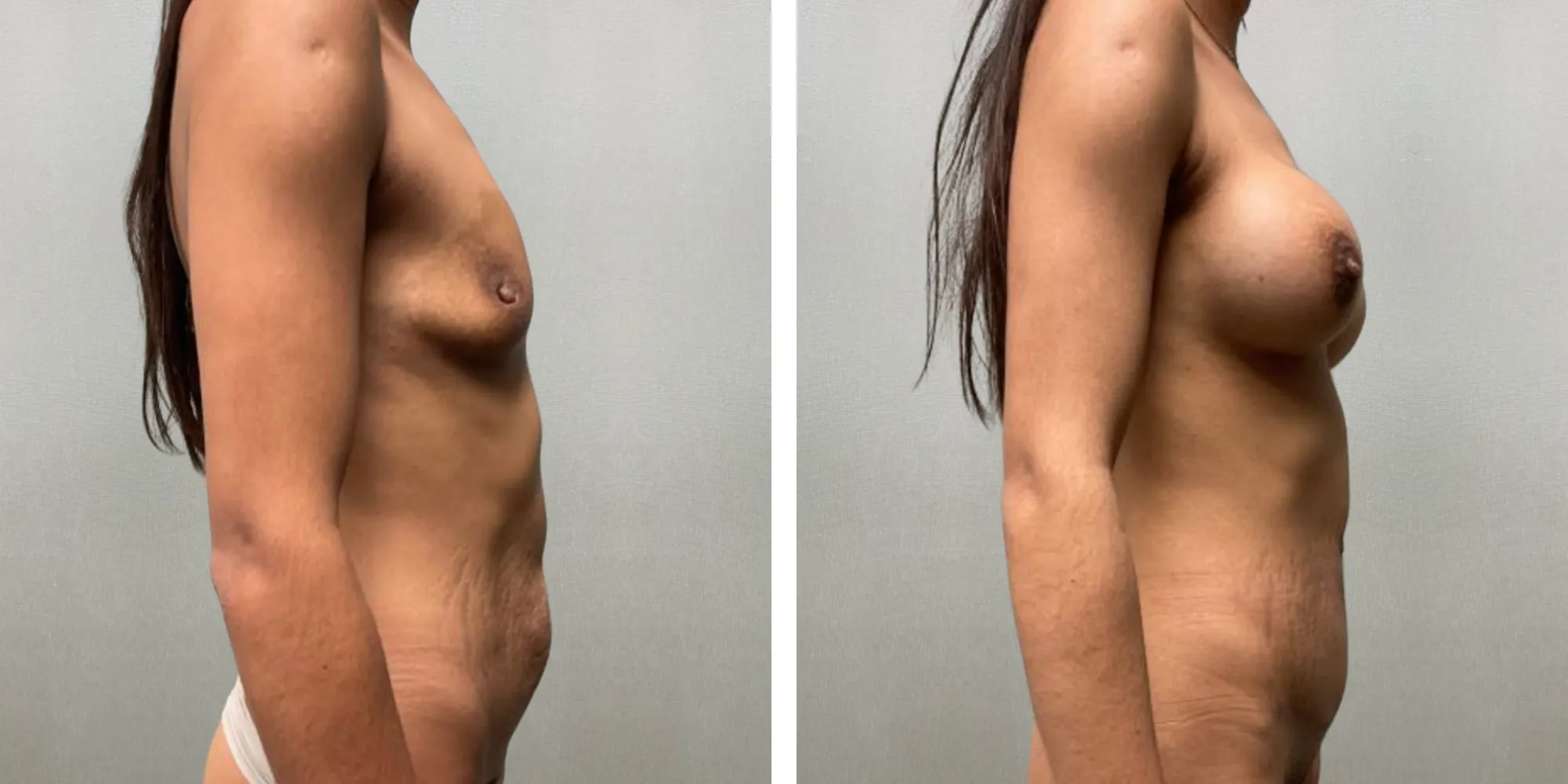 • Left Crescent Breast Lift: Corrected mild asymmetry and refined breast position for a more balanced and proportionate result.